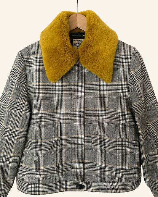 BAUM UND PFERDGARTEN tartan plaid checked faux fur collar jacket