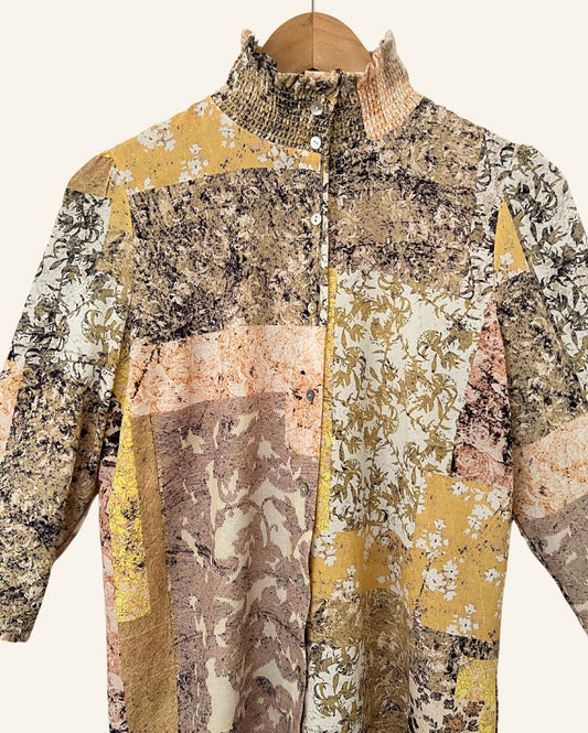 CARIN WESTER multi-colored patchwork high neck shirt blouse