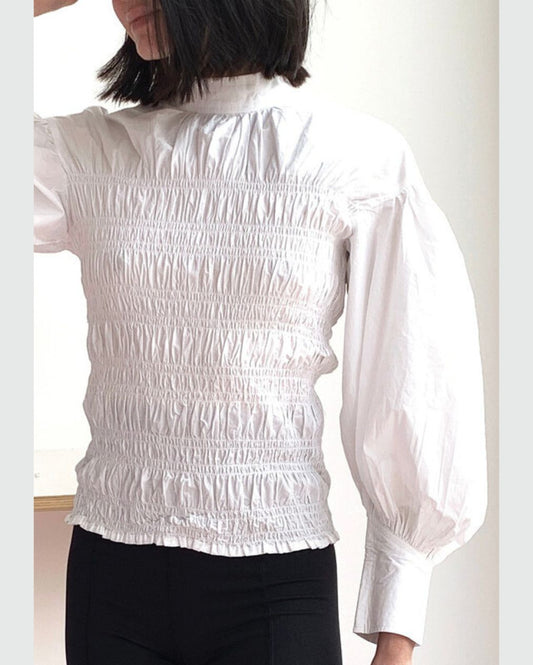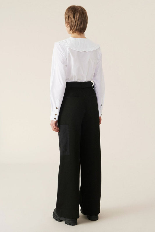 GANNI V-neck ruffled bib collar white cotton poplin shirt