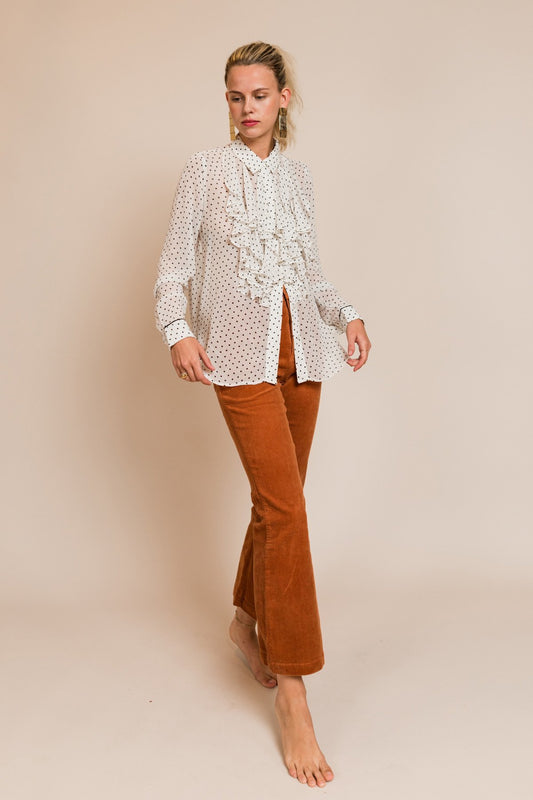 GANNI " Rometty Georgette " chemise chemisier à volants à pois