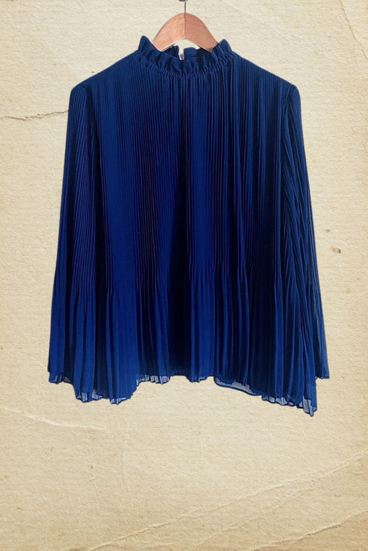 SAMSOE SAMSOE blouse plissée bleu profond avec de magnifiques grandes manches plissées