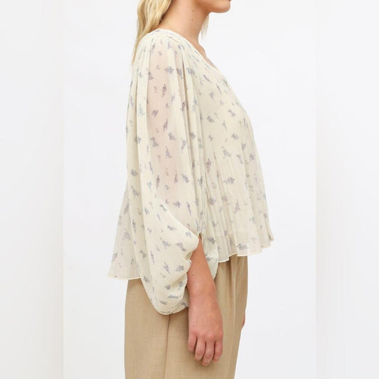 GANNI oversize pleated floral extra puff sleeves V neck blouse