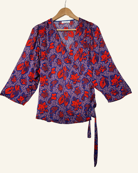 RODEBJER "Benessa" satin wrap kimono spirit floral blouse
