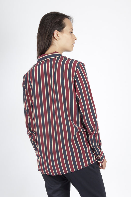 Chemise en soie rayée bleu marine bordeaux GANNI