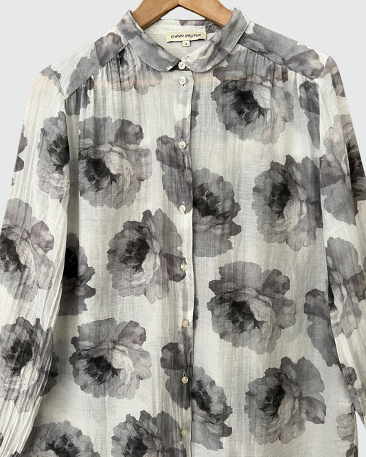 Chemise oversize CARIN WESTER couleur crème à motif floral gris