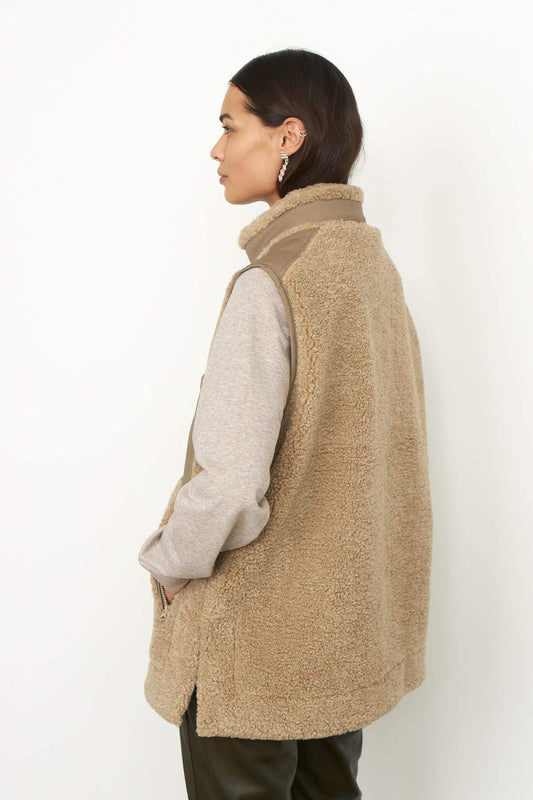 SECOND FEMALE dark beige oversize zipped teddy waistcoat