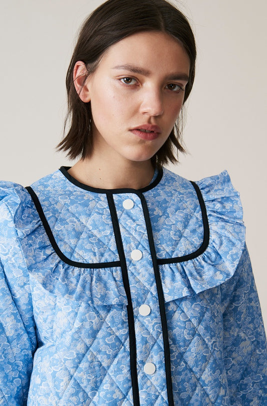 GANNI veste matelassée "Sage" imprimé fleurs bleu clair